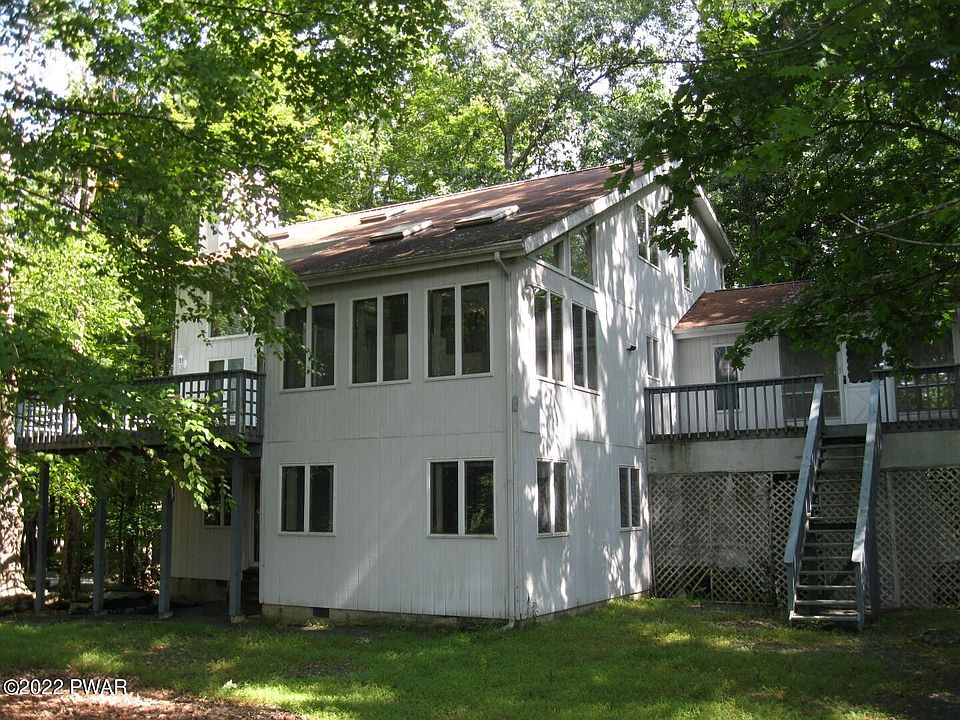 HEMLOCK FARMS POND FRONT HOME- Located on Bluestone Pond this home features 4 bedrooms, 3-1/2 baths, 2 decks, water views and large screened porch on a larger private wooded lot. Over 3600 SQ feet of living space waiting for a large family to enjoy. Come and enjoy all the community has to offer in this pond front home. Sold as is., Beds Description: 2+Bed1st, Beds Description: 1Bed1st, Baths Y, Baths: 1 Bath Level 3, Baths: 1 Bath Level 1, Baths: 1 Bath Level 2, Baths: 1/2 Bath Lev 2, Eating Area: Formal DN Room, Eating Area: Modern KT, Baths: BT Other