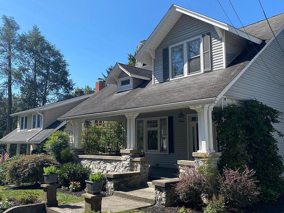 LOCATION LOCATION! This absolutely charming updated 4 bedroom single family home is close to everything Camp Hill Borough has to offer-DON'T MISS your chance to reside near it all! Situated on a corner parcel right next to the library, this home offers every convenience you'll need! Inviting front porch greets-what a perfect spot for coffee and chatting with neighbors. The spacious living room is graced with a stone gas fireplace & rich hardwood floors-a great place for relaxing with your favorite read. The updated kitchen is light and bright with plenty of built-ins, stainless steel appliance package, granite counters & gas cooking. You'll love the intimate sitting area just off the kitchen-with built in cushioned bench seating, ready for you to curl up your legs while dinner cooks. A formal dining room, accented with custom wood molding and chair rail is perfect for dinner for 2 or 10! Work from home or have a separate music room in the den/office space located off the living room. Let the gang spread out in the HUGE family room just off the kitchen that spans the entire back of the home-this area is so light and bright and offers a 2nd gas fireplace and a large walk-in storage closet for games, books and more. This area continues onto a glass enclosed 3 season room with tiled floor that opens up to a beautiful deck overlooking the private back yard and rippling fish pond. Double staircases, one off the living room and one off the kitchen add character and uniqueness to the interior of the home. Convenient half bath on the main level. Retreat at days end to your glorious generously sized primary en suite with BRAND NEW bathroom offering a double headed subway tiled shower with bench and slab glass shower enclosure, double vanity with quartz counter, intricate tiled flooring & sky light. Three additional bedrooms, all with large closets, a full guest bath offering a jetted tub with overhead skylight and step in shower complete the 2nd level. The lower level is partially finished with a bathroom, workshop area and currently has space that is being used as a sewing area. You'll appreciate the tankless hot water heater and energy efficient natural gas heat. A detached one car garage adds more storage and provides covered off-street parking. Walk to get your coffee, restaurants, the gym, grocery store, ice cream, schools the library and park...minutes to downtown Harrisburg, City Island, fireworks...this location cannot be outdone! This is definitely a home like no other! Make it yours today! HAPPY MEMORIES START HERE-Make them yours! Call today for your private showing!”