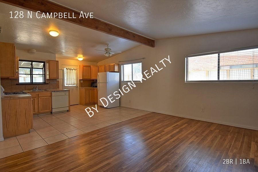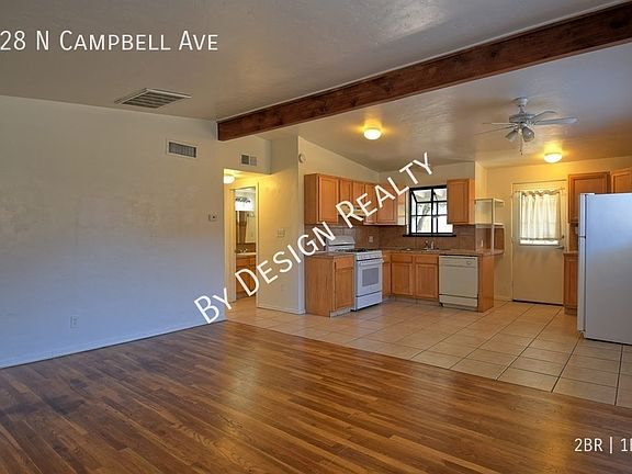 This property is NOT available for a Summer 2025 Pre-Lease and is ONLY available for leases that would start in the next 30 days. Sam Hughes Mid-Century 2 Bed 1 Bath with open floor plan and private yard space. Less than 1 mile to the University of Arizona. Original wood floors in the living area and both bedrooms with tile everywhere else. Vaulted wood beam ceilings. The kitchen has a gas stove, dishwasher, maple cabinets, and tile counters. Central A/C and heat and full-size washer/dryer under the patio. One bedroom has private access to the patio and fenced-in yard. The private Yard is fenced on 3 sides of the property. Lots of covered patio space and mature landscaping. 2 Carport Spaces and lots of other off-street FREE parking. This home is offered as NON-SMOKING. Pets are subject to owner approval.