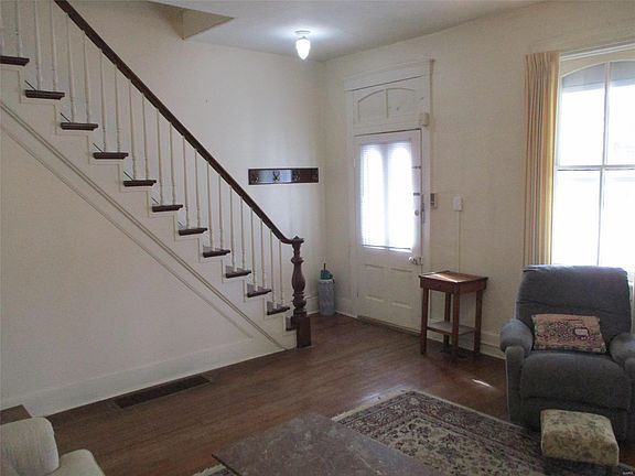 "If only walls could talk, can you imagine the stories they could tell?" Welcome to 128 N. Douglas Ave, Belleville, IL - Built according to St Clair County Records in 1886! Mostly brick exterior with vinyl sided addition, this home is amazing! Step inside to period correct woodwork, pine wood flooring and a 10 foot ceiling in the living room. The beautiful old staircase is the highlight of the room. Plenty of handcrafted kitchen cabinetry can be found in the vintage kitchen which comes complete with all appliances. The main floor bedroom features brand new carpeting!. An Abundance of storage can be found in the main floor full bath. The upstairs bedroom boasts lots of storage and lots of nooks and crannies. A new window unit upstairs provides the perfect temp with both heating and cooling. Plenty of outdoor space - the rear yard leads to both the alley and storage shed. Watch the world go by on the large front porch. ....So many charming features to explore! City Compliant