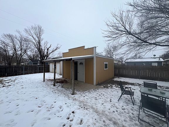 Enjoy small town living at an affordable price in this spacious home that also features a separate building that could be used for outdoor entertainment plus there is a shed for additional storage. Basement is a blank slate of unfinished space that is complete concrete, including ceiling. Making it an ideal storm shelter & storage but could be finished to suit your needs. Main floor oversized laundry room with washer and dryer that will remain with property, plus a small chest deep freeze is included (the one in dining area) if buyer wants to keep it. Home also features zoned heating and air units for comfort and affordability. (outside units are older models but work extremely well)