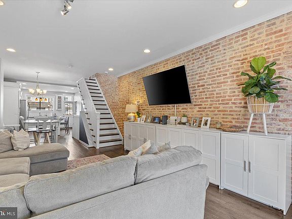 Stunning 13 foot wide brick front townhome in Patterson Park! This beautifully updated home features an open floor plan with wood floors throughout, exposed brick walls, and modern finishes. The gourmet kitchen boasts sleek white cabinets, stainless steel appliances, and a large island, perfect for cooking and entertaining. Upstairs, the primary suite offers a private bath with dual vanities, while a second bedroom and full hall bath provide plenty of space. The finished lower level includes a third bedroom and full bath, ideal for guests or a home office. Enjoy outdoor living on the rear patio with a privacy fence, your own quiet city retreat! 1 year of CHAP tax credit left! Located within the Johns Hopkins free shuttle zone.