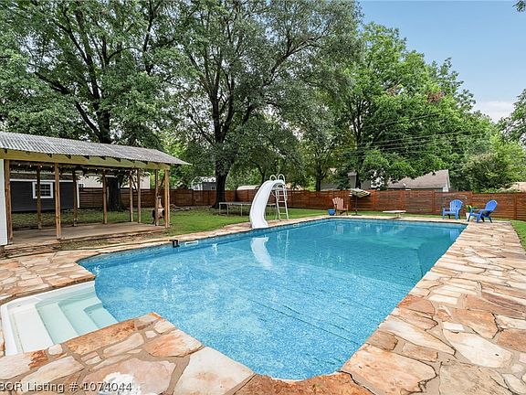 Follow the paw prints from the square in Downtown Greenwood Arkansas up Main Street, just before the high school, you'll find this traditional farm house ranch, with its fresh curb appeal, white lap siding and a resort like backyard oasis. The interior comes straight off your Pinterest board & IG dreams with brick floors in the kitchen, original hardwoods throughout and true salvaged shiplap in the living room. Through the sunroom, perfect for those succulents a pothos or two and of course that fiddle leaf, is a large gathering room or possible 4th bedroom. Imagine the victory parties to be had out back on the flagstone rock terrace surrounding the diving pool, covered pool house and oversized tree shaded backyard completely privacy fenced with horizontal slatting. Enjoy the parades, the fireworks and Friday Night Lights! Its a G thing, and "It feels like home"