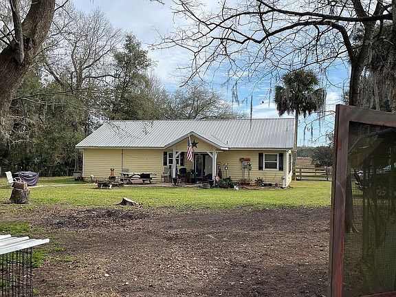 Private country living with a beautiful open pasture view of the sunrise. Gated, cross fenced. 20x40 barn with electric and water. Detached 12x24 workshop with X-Large carport with 8” concrete for heavy equipment. Plywood (not usb) under metal roof. Attic decked with plywood and drop down ladder. Bonus office with separate door off the 10x24 front porch. Annual termite, house and yard treatments by Florida Pest Control.