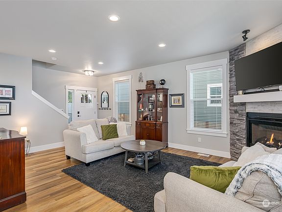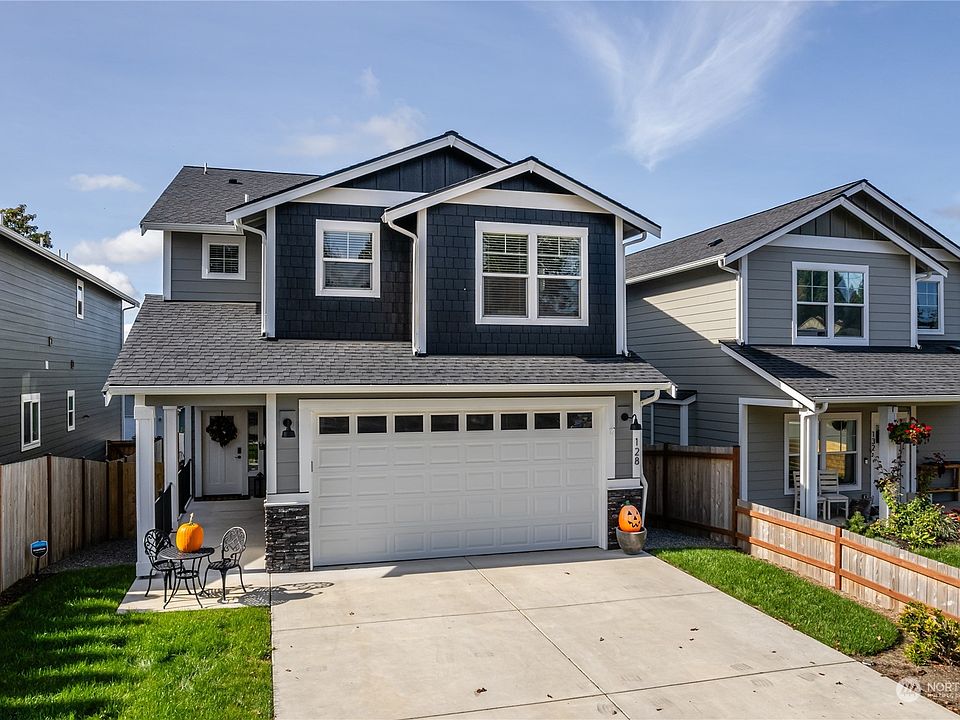 Like new home in Arlington. Beautiful 2 story 3BR 2.5BA. Appx 2,000 sqft with 2 car garage and nice fenced back yard. Covered back deck/front porch. LVP flooring on main level, rough edge granite countertops, tile backsplash, gas fireplace, soft close drawers, stainless appliances, upstairs laundry and good sized bedrooms. Owner suite features tile/glass shower, big soaking tub, large walk-in closet. Upstairs loft for bonus room or office set up. Heat Pump/AC! Walking distance to downtown, Centennial Trail, Library, and schools.