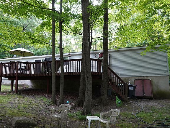 Enjoy peace and quiet, while still having easy access to Tobyhanna, Scranton, Newfoundland, Lake Wallenpaupack and Interstate 84! This ranch home on a private setting features 3 bedrooms, 2.5 bathrooms, a master suite on the main level, family room with brick-faced wood-burning fireplace, separate livingroom, back deck for entertaining, storage shed, and a huge, 1,600 sq.ft unfinished basement for great storage or future expansion.