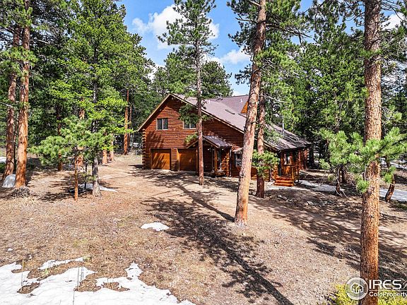Discover your dream retreat with this beautiful log home in Allenspark, set across three generous lots totaling over 1.5 acres (.41, .52, and .63 acres each). The home was remodeled in 1993 with a 2000 sq ft addition. Surrounded by lush trees and woods, this home offers unparalleled tranquility and privacy, yet remains conveniently located in-between Estes Park and Lyons. The expansive living room is a highlight, featuring impressive wooden ceiling beams sourced from the property, a charming stone fireplace with a built-in wood stove, and double doors leading to a serene outdoor area perfect for a future deck. Designed for entertainment, the kitchen flows seamlessly into the dining area and boasts a breakfast bar, stainless steel appliances and Sub-Zero fridge, and freezer.The bathrooms have been newly updated with contemporary finishes and fixtures, adding a modern touch to the home's rustic charm. Each bedroom provides ample space, with the primary suite offering a jetted tub with a breathtaking view and a walk-in closet with private office space above. Fresh carpeting throughout the home ensures a clean and cozy atmosphere. Call today for your private showing of the home!