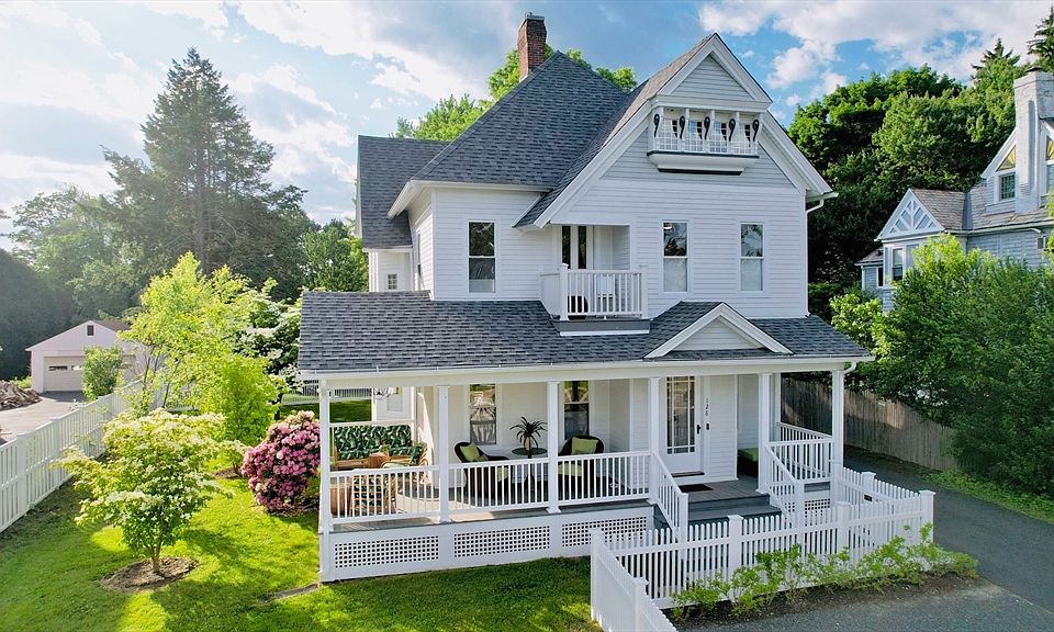 Hi-score walkability, charm & flare are found at this renovated/redesigned 3 bedroom 2½ bath home w/lots of natural light. It sits on .71 acre w/a small stream in back. The renovation retained the Victorian exterior w/a modern interior. The front entry & rear mudroom lead to the open-concept living areas w/high ceilings, wood floors, fireplace, powder room & coat closets. The kitchen has SS appliances, pantry & large island adjacent to the dining area. Upstairs are 3 bedrooms w/custom closets, 2 full baths, a laundry area & linen closet. The ensuite primary features a double vanity, multi-head shower, Toto Washlet toilet & walk-in closet. The reno included all new plumbing, baths, kitchen, roof, Hardie Board siding, full insulation, fences, landscape, 200-amp electric, 2-zone central HVAC, an oversized insulated 2-car garage w/HVAC, EV charging & a new driveway. Hi-efficiency items include HEPA HVAC w/fresh air exchange & built-in humidifier, LED lighting & on-demand circulating HW.