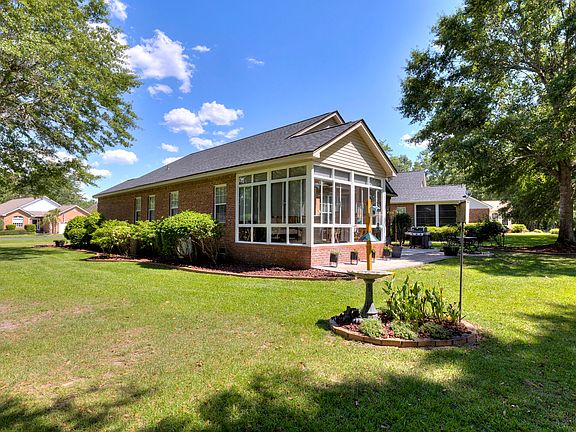 This amazing home has it all: location, amenities, and upgrades within the gates of Wyboo Plantation. 3BR/2BA features an owner's suite w/ walk-through closet leading to the bathroom. Property overlooks the 2nd green on The Players Course providing stunning views of the golf course and majestic Live Oaks. Upgrades include an elevated luxury patio enclosure w/ sliding glass door / windows / solar shades / cedar plank ceiling. Modern kitchen w/ granite countertops, farmhouse sink, spacious pantry and new appliances. The open concept living space includes a fireplace, vaulted ceilings, and Berber/hardwood floors. Landscaping features include designer patio w/ decorative paving stones, custom brick borders & automated irrigation. New roof 2023 - 2 boat slips w/ easy access to Lake Marion.