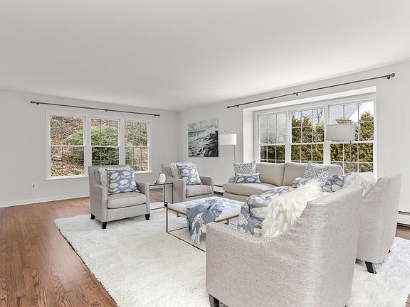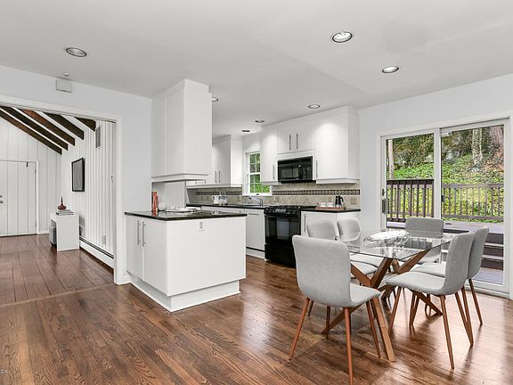 Inviting five-bedroom Colonial, set back on park-like .67 acre within walking distance to schools and town, checks all the boxes. Freshly painted walls, new hardwood floors, updated bathrooms, light-filled interior - in an A+ location. Showcases chic living room with three exposures, formal dining room; Snaidero granite-clad kitchen with breakfast area offering sliding door to private deck and wonderful family room enhanced by a vaulted beamed ceiling with skylights, bay window and wood-burning fireplace. Main level also features en-suite bedroom, powder room and attached two-car garage. Spacious master suite with walk-in cedar closet, updated bath; three comfortable bedrooms and full upgraded bath comprise the second floor. Enormous lower level provides potential for playroom or gym.