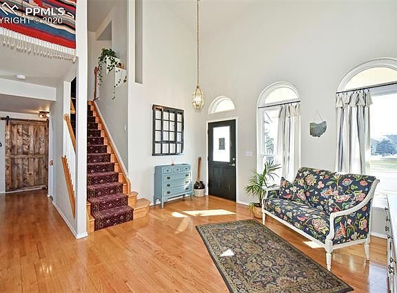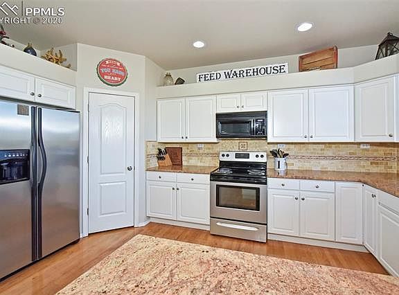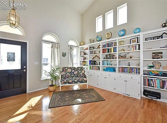 Beautiful home, amazing views, great price what more could you ask for? This home is a commuters dream. Conveniently located off I-25 and just minutes from shopping, hiking, dining and much more. Hard wood floors throughout, vaulted ceilings, hand poured cement countertops, granite counter tops in the kitchen, large back yard with stunning Front Range and Pikes Peak views will wow guests during backyard barbecues. Gas fireplace, central air, whole home vacuum just a few of the included amenities. Park with playground right across the street is perfect for play dates. Plenty of storage area throughout the home. Main level laundry room with included washer and dryer. 2 car garage with walkout to the back yard.