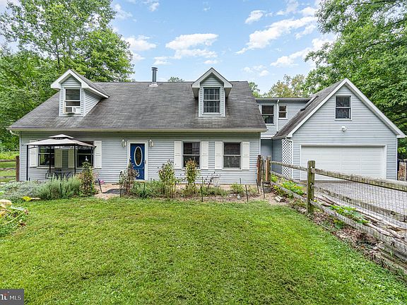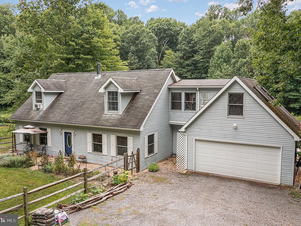 Nestled on 3.5 picturesque acres, this inviting 4-bedroom, 3.5-bath Cape Cod home offers a perfect blend of rustic charm and modern amenities. The 2,128 sq ft residence boasts a thoughtfully designed layout and a host of outdoor features that make it a true retreat. Enter into an open and airy floor plan where the dining space seamlessly flows into the eat-in kitchen on the right, while the cozy living room is to the left. The kitchen features elegant granite countertops, maple cabinetry, and stylish tile flooring, making meal preparation a pleasure. The main level includes a comfortable bedroom with durable LVP flooring and a full bath with a tub/shower combo. Above the 2-car garage, you'll find a versatile guest suite or office with its own separate entrance. This expansive area includes skylights, a 1/2 bath, and a Jack-and-Jill full bath connecting to an additional bedroom. The master suite is a private haven with plush carpeting and a luxurious full bath complete with a jetted tub with shower. Enjoy serene views from the large deck that extends over a deep pond, perfect for relaxation or entertaining. A dedicated picnic space with a BBQ and a sandy beach area offers a delightful spot for outdoor meals and gatherings. A shaded RV site with full utilities provides convenience for travel enthusiasts. Mature fruit trees and a well-tended garden add charm and utility to the property. The property includes a fenced-in area with a shed, a firepit surrounded by stone for cozy evenings, a 1-car detached garage with an EV hookup, and a carport. Direct access to hiking on the Appalachian Trail from your own backyard makes this home a haven for outdoor enthusiasts. This Cape Cod gem in Gardners combines modern comforts with natural beauty, offering a tranquil lifestyle with all the amenities you need. Don’t miss the opportunity to make this unique property your own.