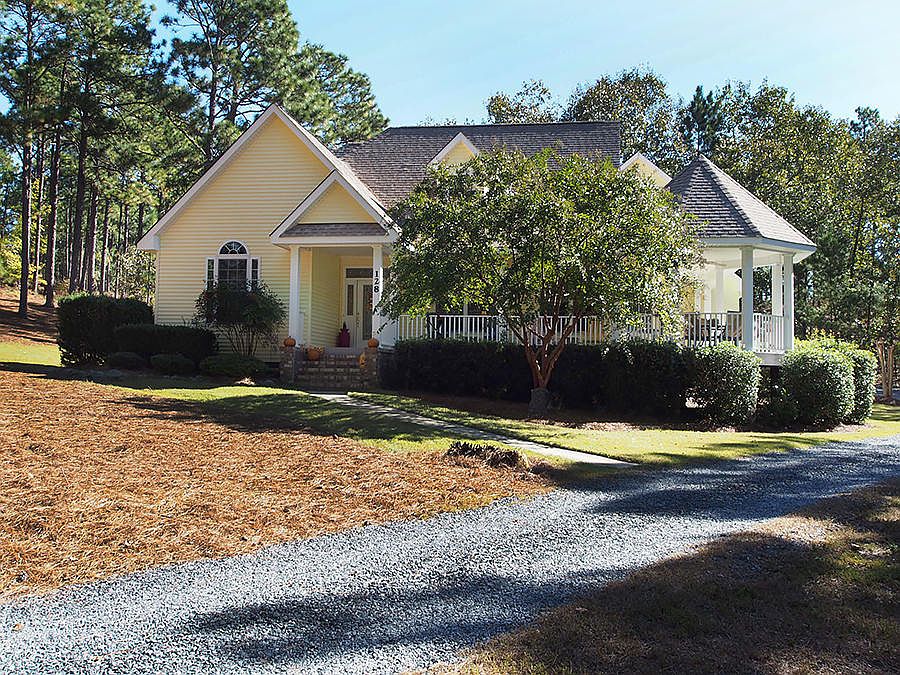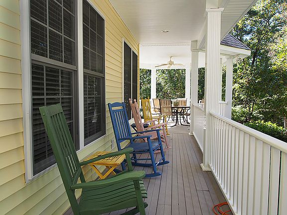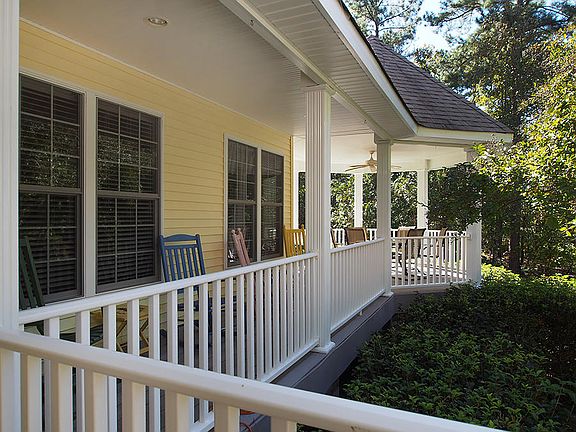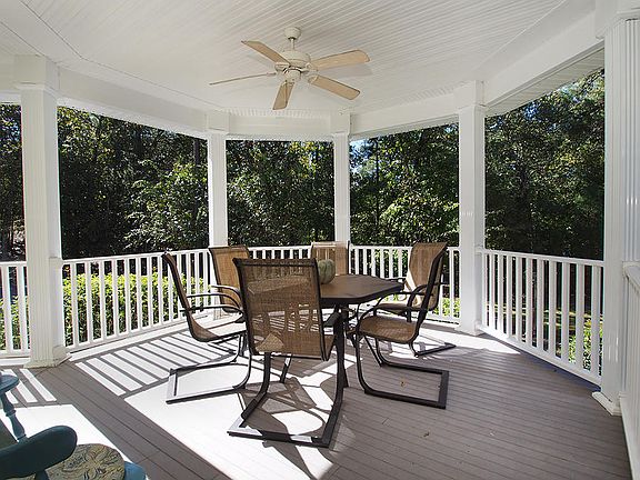 Located on a large private wooded lot in the gated community of 7 Lakes West, this 2 story home built in 2004 offers a lovely wrap around covered front porch and a corner gazebo. Foyer opens to a spacious Living and Dining room. with a gas log fireplace, tile surround and decorative wood mantle. Gourmet kitchen with lots of great counter space, raised breakfast bar, pantry closet and bright and cheery eat-in area. The large laundry room provides a built-in desk, wall cabinets and access to the side porch. Master bedroom on the main level has a trey ceiling and lovely crown molding with bay wall seating that brings lots of natural light to the room. In addition, there is a 11x13 den off the foyer that could also be used as an office. There are 3 additional bedrooms, 2 full