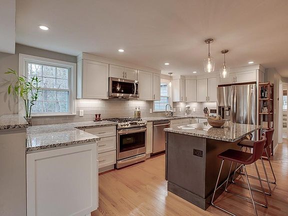 - Kit Dscrp: Flooring - Hardwood, Countertops - Stone/Granite/Solid, Cabinets - Upgraded, Kitchen Island, Stainless Steel Appliances, Recessed Lighting, Remodeled, Lighting - Pendant