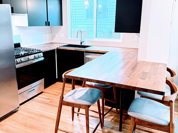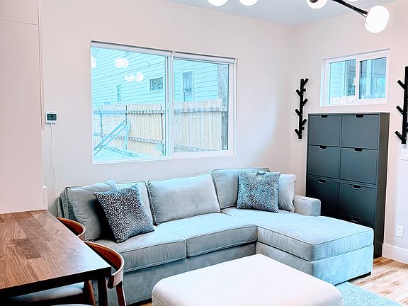 Features a private fenced-in yard with exclusive entrance off the rear alley on Winter Avenue. Newly finished interior hosts smart floor plan loaded with built-in storage options and modern finishes. Kitchen area features SS appliances, large custom cabinetry, block wood finished counters, and eat in area. Complete living area with ample storage, cove lighting, and beautiful furniture. Sleeping area with built-in custom bed has 6 large storage drawers, and 2 large wardrobes with dual sliding doors. Bathroom equipped with generous marble shower, floating vanity, and stacked washer/dryer. Home fully equipped for easy transition!