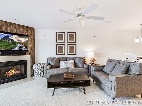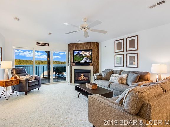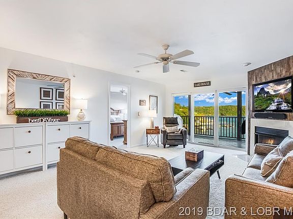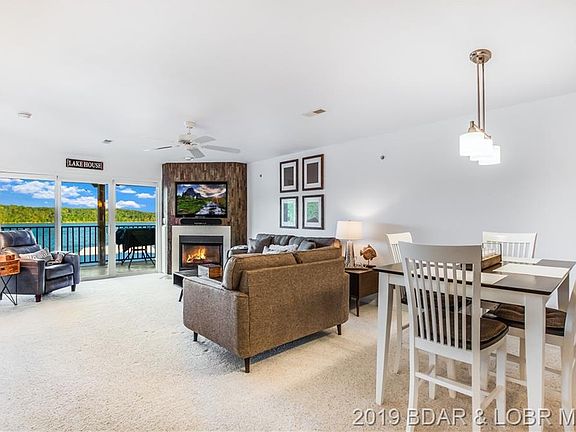 Welcome to the most desired building at Park Place on the Lake! The only elevator in the development is just steps away from your front door. Perfect for rolling your cooler to your boat or for a walker or wheelchair. The outstanding lake views of the Lake of the Ozarks State Park welcomes you. This immaculate condominium has such a nice open and bright space that features lovely upgrades and comes completely turn-key and ready for you to walk in the door and enjoy the peaceful lake vibes. The open floor-plan invites you to the wood paneled gas fireplace & screened-in deck with gas connection for your grill. Fresh paint throughout, NEW shades, NEW Furniture indoor / outdoor, titled master bath with added hangers for your convenience. This perfect home package comes complete with a 12X32 slip & 6,000lbs hoist located right in front of your unit. This financially sound project offers so many amenities including pool, lakefront fire-pits, clubhouse, exercise room, & playground and more!