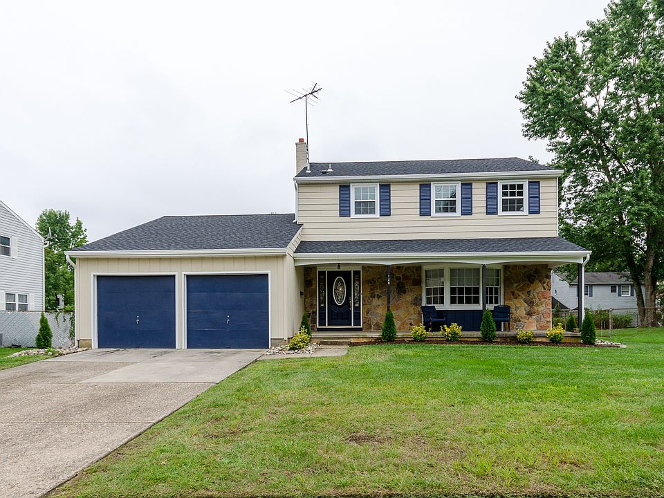 This totally remodeled colonial will impress you from first look! The oversized front covered porch has rich stone and a bay window. The newer front door has an oval glass insert and decorative side lights. The freshly painted exterior with newer vinyl windows and newer roof are exterior highlights. When you enter the foyer you will be pleased to see the gray ceramic look flooring that runs into the kitchen. All the trim on the first floor has been updated to 5 in baseboard and 3 inch door trim. The formal living room is expansive and has walnut stained hardwood floors, a bay window, and crown molding. The formal dining room has crown molding and double windows for natural light. The dining room opens to the living room and allows for you to expand your dining table. The magnificent kitchen has classic white shaker cabinets with self closing drawers. The expansive center island has plenty of storage and prep space. The island can seat many guests. The stainless steel appliances include gas stove,microwave, dishwasher and refrigerator with ice and water. The rich quartz counters have gray veins that compliment the kitchen. The natural light from the windows and recessed lighting illuminate the kitchen. The kitchen and family room are open to each other. The brick wood burning fireplace has a walnut mantle that is the focal of the family room. The newer carpet and ceiling fan are other highlights. The updated PR has white cabinets and it adjacent to the family room. The laundry room is conveniently located off the garage. The hardwood staircase leads to the 2nd floor with hardwood floors throughout. The master suite has a private updated bath. The gray cabinets, hexagon Carerra marble flooring are nice touches. The stall shower has subway tile and a frameless shower door. The other 3 bedrooms are neutrally decorated and have hardwood floors. The main bath has double square sinks in a white cabinet base, wood look ceramic flooring and a newer tub with subway tile surround. The unfinished basement has a French drain and is ready for your finishing touches. The patio off the family room is a great place for ourtdoor entertaining. The partially fenced flat backyard is a great place for outdoor play. All the work has been done just call the movers. Located close to shopping, and major roads and an easy commute to Phila. 2018-11-20