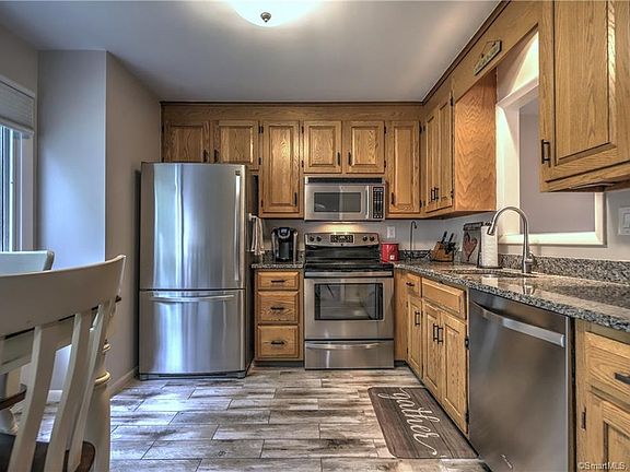 Move right into this updated end unit townhouse in desirable Aspetuck Village. Some of the features are granite countertops, stainless steel refrigerator and stove, dining room with bamboo like floor as well as in hallway and office/den/bedroom. New patio door, to Trex Deck - built in bookcases and either side of brick fireplace. new garage door.