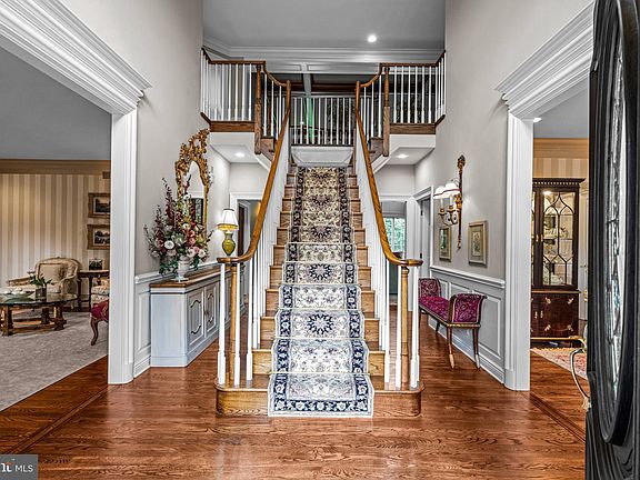 Welcome to this stunning, custom-built brick masterpiece nestled in one of the most sought-after neighborhoods in all of Moorestown. Crafted with exceptional detail and timeless elegance, this home offers luxurious living across every level. Step into a grand main level featuring a spacious foyer with a double staircase, sunroom, private office, and a family room showcasing a dramatic floor-to-ceiling stone fireplace and coffered ceiling. The formal living and dining rooms are adorned with crown molding, while the custom laundry room, mudroom, and powder room offer everyday convenience with elevated finishes. The heart of the home is the gourmet kitchen, complete with a center island, breakfast nook, and beautifully updated cabinetry and countertops, all flowing seamlessly over rich hardwood flooring. Upstairs, the primary suite is a retreat unto itself, featuring a sitting room with fireplace, luxurious ensuite bath, and generous closet space. Three additional oversized bedrooms and two full bathrooms complete the upper level, offering comfort and privacy for all. The finished basement is an entertainer's dream with daylight windows, a recreation room with fireplace, custom wet bar, exercise room, full bath, and elegant built-ins—plus room to convert a space into a fifth bedroom. A walk-up attic provides even more potential for future living space. Step outside to two exceptional back patios—one two-tiered, the other custom brick with bluestone detailing—overlooking a huge backyard backed by serene woods. Every inch of this home has been thoughtfully designed with high-end built-in cabinetry, top-tier finishes, and modern updates to the kitchen and baths, offering a rare opportunity to own a truly special property in an unbeatable location.
