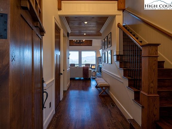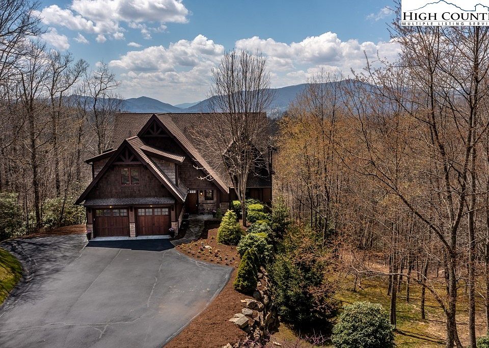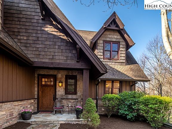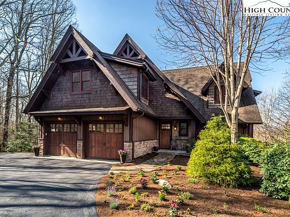 Extraordinary character and timeless appeal are found in this mountaintop home located in Headwaters at Banner Elk. This exquisite home is privately situated on 3.99 professionally designed landscaped acres with a fenced-in yard and private trail systems. Upon entry, you are greeted by the open-concept great room with beautiful floors, vaulted ceilings, two-story stone fireplace and amazing use of windows and doors showcasing the views. The gourmet kitchen features an oversized island, gas cooktop, top-of-the-line appliances and butler pantry. The oversized master suite features a spa-like bath with dual vanities, amazing shower, heated tile floors and deck access. Upstairs, two guest suites are found with en-suite baths and private decks, allowing privacy for all. The upstairs bonus room features a great living space, bar area with beverage refrigerator and custom built-in beds with trundles. The 867-square-foot bonus room has many options and includes a custom built-in trundle bed, private bath and deck access. The outdoor living space is impressive with an outdoor fireplace, hot tub, fire pit in yard and multiple sitting areas with magnificent views.