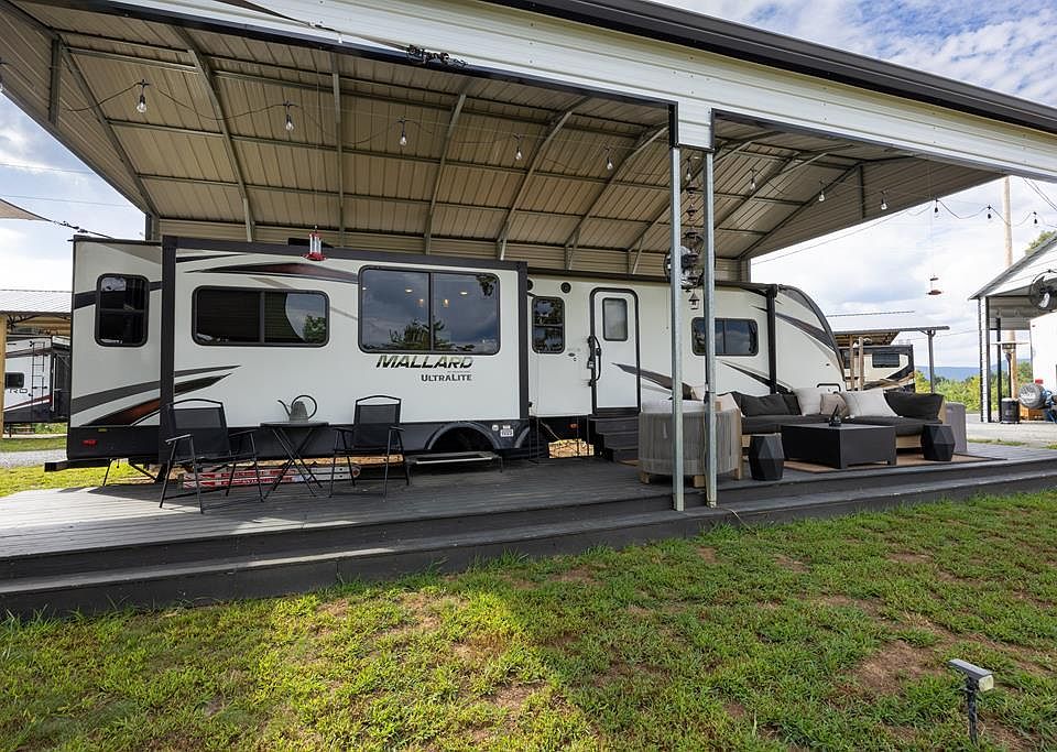 This 0.72-acre property in an RV- and tiny-home-friendly community is loaded with upgrades and ready to enjoy! Included is a furnished 40' 2018 Heartland Mallard RV, plus a 12x16 shed that has been beautifully converted into a furnished sleeping cabin complete with a kitchenette, full bathroom with soaking tub, bunk beds, and a cozy sitting area. Outdoor living is a highlight with mountain views from the flagstone patio and outdoor kitchen, a spacious deck connecting the RV and cabin with seating space, and a lower-level fire pit area perfect for gatherings. Additional improvements include an RV carport with 14' opening, a storage shed, and built-in RV storage for added convenience. A 2-bedroom septic system is already installed, with underground utilities and shared community water in place. With these upgrades complete, this unique property is truly move-in ready, offering you an easy blend of comfort, functionality, and mountain living!