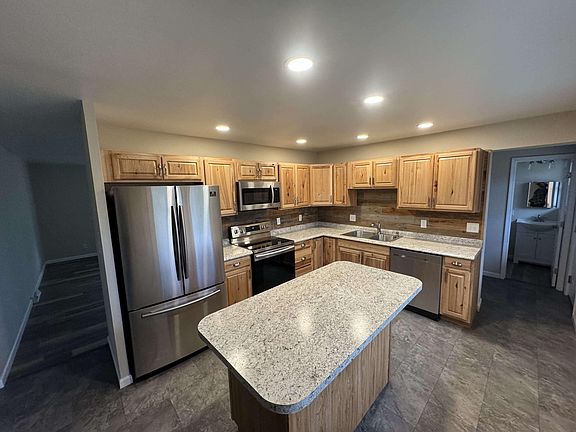 Completely remodeled interior 3 years ago: kitchen cabinets, counter tops, appliances; all new vinyl plank flooring throughout, new interior paint (1/1/24). Furnace and central air are three years old. Roof and gutters are in very good condition.