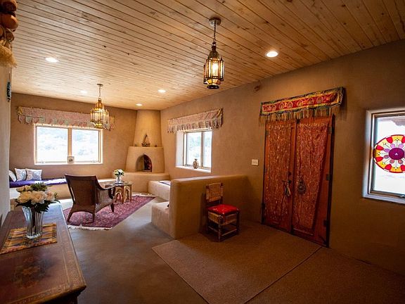 NATURAL BEAUTY - Exquisite and spacious 3,231 sq.ft 5 bedroom, 3.5 bath home sits on 37.10 acres of breathtaking natural beauty in El Rito/Latir Northern New Mexico. Built in 2004 this custom strawbale and frame pueblo-style home features earthen design elements, flexible room configurations and abundant windows for plenty of natural light and panoramic views of the mountains, sunsets, and night skies. Full of traditional southwestern features with natural materials including mud floors, traditional mud plaster walls, kiva fireplace, Saltillo tile, nichos, banco seating, built-in bookcases and more. Architecturally designed with roots in Feng Shui principles the home is a complement of tranquility and luxury. Many custom accent wood pieces and doors from Afghanistan and Morocco. Large kitchen with separate dining area features custom cabinetry, butcher block island, built-in banco seating, and views of the Latir Wilderness. Central temple/meditation room/office is a unique focal point with overhead skylight. Downstairs has two private bedrooms, full-bath, laundry storage area and a half bath. Upstairs features bamboo floors, 3 spacious bathrooms, 2 full spa-like bathrooms and a roof deck perfect to enjoy panoramic western sunset views. Flexible floorplan allows for desirable spacious bedrooms, multiple home office spaces or creative spaces. The home was designed for community and retreat. Whether you're looking to entertain or just enjoy some peace and quiet, this home offers it all. 37 pastoral acres with a blend of sage brush, pinon/juniper trees, acequia with water rights it is perfect for sustainable agriculture, horses, or just some space between your neighbors. Located in El Rito/Latir about 45 minutes north of Taos with easy access to outdoor recreation, you can enjoy fishing, hiking, and wilderness all within reach. Located in proximity to the Latir Wilderness and nearby BLM/Rio Grande Wild and Scenic River corridor. Don't miss this chance to own a piece of paradise!