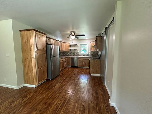 Conveniently located near shopping, dining, and gas stations, this beautifully updated ranch-style home offers comfort and accessibility. Featuring 3 spacious bedrooms and 2 full bathrooms, the interior boasts luxury vinyl plank (LVP) flooring throughout for a modern and durable touch. The inviting kitchen comes equipped with appliances and stylish under-cabinet lighting, perfect for both everyday cooking and entertaining. A farmhouse-style sliding door adds character and leads to the enclosed laundry room, which opens directly to the fenced backyard. Enjoy outdoor space including a Shed for your Storage use. Call today. Note: Pets are negotiable, Landlord will make final decision. 1 Dog allowed