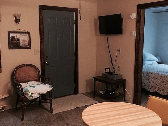 One story, one bedroom, one large bathroom, combined kitchen and living room Cabin on cleared .588 Acre lot. Has small rear deck and enclosed front porch. Storage in crawl space. Has small washer and electric dryer. Has a well and holding tank and septic tank. Dish Satellite TV, Frontier Telephone and Internet connected. Garage with electric door opener.
