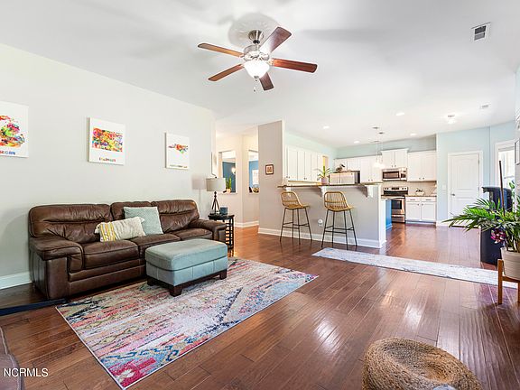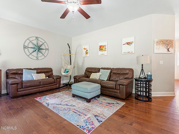 If you are seeking small town coastal NC living near the ICWW, Wilmington, and Topsail Island, look no further. Kings Ransom provides all that and more with NO HOA and the Topsail School District. A short distance from Ironclad @ Belvedere, Olde Point and the public wildlife boat access on Sloop Point Loop. You are greeted by a lovely covered front porch for afternoon Carolina Coastal breezes. Enter into an open foyer and your dining room on the left with warm tones, coffered ceiling and wainscotting. This 4-bedroom home in 1.5 stories has a large master bedroom at 18x14 and is joined to the master bathroom by double doors and includes a double vanity, soaking tub, spacious shower, water closet and large walk-in closet. You will enjoy an eat-in kitchen including an island for quaint meals or a dining room to share with your guests. The back yard has a 6-foot wood privacy fence waiting for you to create your private oasis or garden.