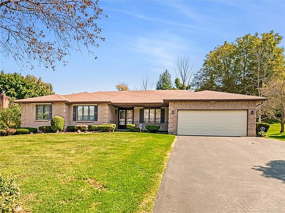 Welcome to this delightful ranch-style home that offers an impressive 2328 SqFt of living space! Note the lovely brick front exterior w/front window awning. This charming property boasts 3-4 bedrooms & 2.5 bathrooms, providing ample room for family & guests alike. Step inside & discover a world of comfort & convenience. The spacious kitchen features abundant cabinet & counter space, a triple-sized pantry, & new appliances, including stove w/Jen-Aire grill for culinary adventures. The formal dining room is perfect for hosting elegant dinner parties or enjoying family meals. Cozy up in the family room, where a Heatilator fireplace adds warmth & ambiance to your gatherings. The primary bedroom offers a tranquil retreat. This home is brimming with extras that make life easier and more enjoyable. Enjoy the convenience of 1st-floor laundry or home office. Andersen windows throughout, and a central vacuum system. The two-car garage ensures your vehicles stay protected from the elements. But wait, there's more! The full basement, with security windows, is a blank canvas waiting for your creative touch, Show and sell ebox front door. All appointments through Showing time!