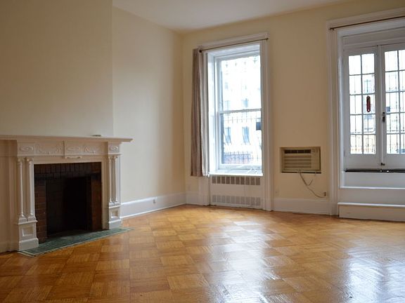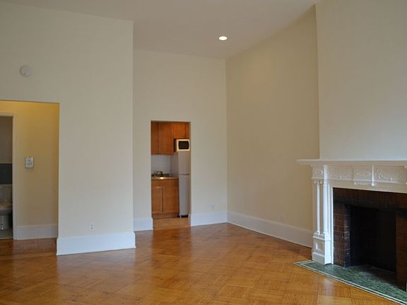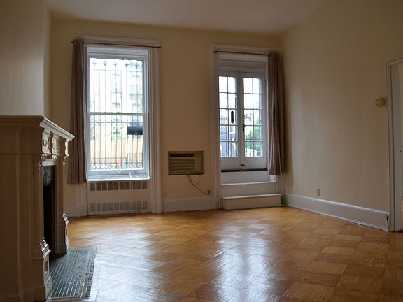 Great South facing large apartment with private outdoor access. Apartment has newish working kitchenette, dining area off the kitchen with large sunny living room with decorative fireplace and access to large private outdoor. Bedroom will accommodate queen size bed, dressers . Full size "70's blue bathroom has full size tub and working exhaust. Entry foyer has double in size coat close. The entire apartment has great hardwood floors, hi ceiling and again tons of sunlight and built-in A/C unit. Please no pets. Call in advance for private appointment. Remember about protection against covid-19. Unit can be available as early as August 1st, 2020