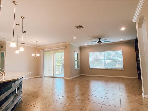 Gorgeous condo in Bay Street with a great water view! Move in ready. Newly painted throughout the unit, shiplap natural wood wall and breakfast bar. The kitchen has beautiful wood cabinets and complimentary stone countertops. All flooring is large tile or new laminate in the three bedrooms. Crown molding accents in the Great Room and Master bedroom. The garage has been newly painted as well. This location is second to none as it is minutes to Venice Island/beaches and a short drive to highly desired Siesta Key/Beach. Close to Legacy Trail and Oscar Scherer State Park. This rental won't last long! Owner looking for a 6 month lease. Available for rent on 11/29/21.