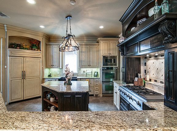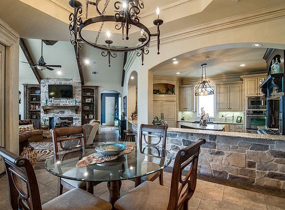 Spectacular custom home that will surpass your expectations! The beauty of this property envelopes you as soon as you arrive. The dramatic entry showcases a tray ceiling, formal dining room with gorgeous iron sconces, hanging iron light fixture and brick and stone wine grotto. A fully appointed chefs kitchen with French glazed cabinetry features a granite island, ceramic farm sink, dual dishwasher, six burner stove with griddle, spice pulls, warming drawer, built-in refrigerator, ice maker and large walk in pantry. A stunning see through stone fireplace with custom built-ins is situated between the charming family room with wood beams in the vaulted ceiling and the custom game room with sitting area, wet bar, wine chest and pool bath. The luxurious master suite boasts a tray ceiling, separate sitting area with access to the outdoor living area, bath with French finish cabinets, jetted tub, double-entry shower with dual heads, body sprays and spacious walk in closet. All expansive bedrooms have private baths and the fourth bedroom has a private dressing area, as well as, reading and/or study nook. Be sure to peek into the hide away space tucked between the second and third bedrooms. This secret area could be used for a childrens play area or let your imagination soar. The sumptuous outdoor living area highlights the covered patio, outdoor kitchen with grill, fire pit, pool and spa with gorgeous water falls, lush landscaping, & greenbelt enclosed by wrought iron fencing. Enjoy the welcoming retreat of a full cabana that exudes charm and warmth. Throughout the home view the exceptional finishes with faux finished walls, numerous ceiling features, extravagant molding and hard wood floors. Additional features include handsome study with coffered ceilings, court yard, mud locker and four car garage with cedar doors, finished floor that leads upstairs to a huge bonus storage area. This exceptional house plan and luxurious amenities perfectly complement the outdoor living oasis.