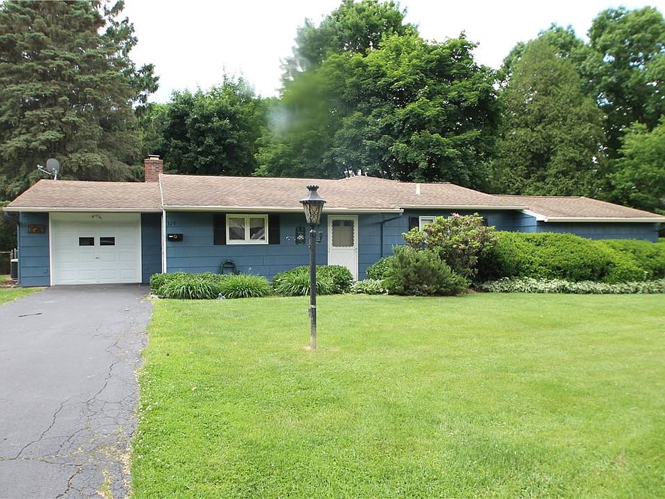 This beautiful ranch home is in the town of Perinton with East Rochester mailing address, but no village taxes. Centrally located on a quiet street with mature trees. The updated kitchen (2017) has maple cabinets, quartz countertops, bamboo flooring and is just stunning, with tons of counterspace and opens to the cozy living room, which is great for entertaining. The great room was added in 2002 and has vaulted ceilings, already hooked up for a gas fireplace, huge storage/pantry room, and french doors to the patio and private park like yard. 3 bedrooms and 2 full baths. The master bedroom has an abundance of closet/storage space along with a sliding glass door to the yard. Centrally located near expressway, shopping and restaurants. This home is your chance of a lifetime to own for less than you can rent!