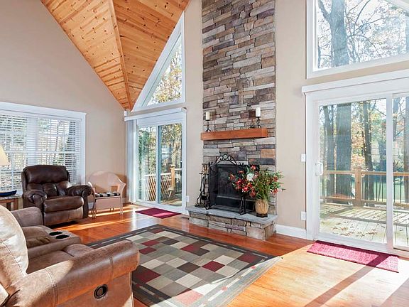 Furnished! Don't let the outside of this one fool you... This adorable Cape Cod style home is much more spacious than it appears! The main floor features plenty of natural light and an open floor plan, with the kitchen open to the dining area and stunning living room. Beautiful lake views can be seen as soon as you enter the front door. The kitchen has granite countertops, soft close cabinetry, a pantry, and stainless steel appliances (including a fridge that is less than 2 years old). In the living room, you'll find soaring vaulted wood plank ceilings, a stacked stone fireplace, hardwood flooring, and sliding glass doors that lead out onto the large rear deck overlooking Lake Hartwell. Also on the main level is the main master suite. Hardwood flooring continues from the living area into the master, which also has access to the deck. The master bath features a wide vanity with granite countertops and double sinks, large corner jetted tub, a walk-in floor-to-ceiling tile shower, and a generous sized walk-in closet. On the second floor is a loft overlooking the living area, which is larger than most and could easily be used as an office, rec space, or even additional sleeping quarters for weekend guests! Upstairs you'll also find a secondary master suite with access to a private balcony, a walk-in closet, and a full bath with tub/shower combination. The lower level has a rec room, two additional bedrooms, and a full bath. Tile flooring is installed throughout the finished basement for easy cleanup. The home is being sold furnished, and several items are like new!
