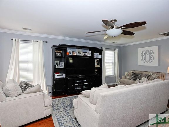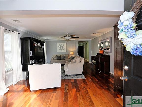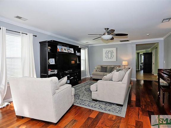 Through the gated entrance and the flowing street to this perfectly appointed abode. Wood flooring in the main living areas of this home. Bright natural light abounds throughout. Spacious kitchen with island and hanging pot rack. Tiled flooring completes the kitchen and dining area. Off of the dining area is the primary suite with garden tub, separate shower and dual sinks. Generous guest bedrooms. Split plan layout. Laundry room with overhead storage rack. The rear of the home has a screened in porch to enjoy the shaded back yard with lush landscaping. Close proximity to I-95, I-16, Airport, Gulfstream and HAAF.