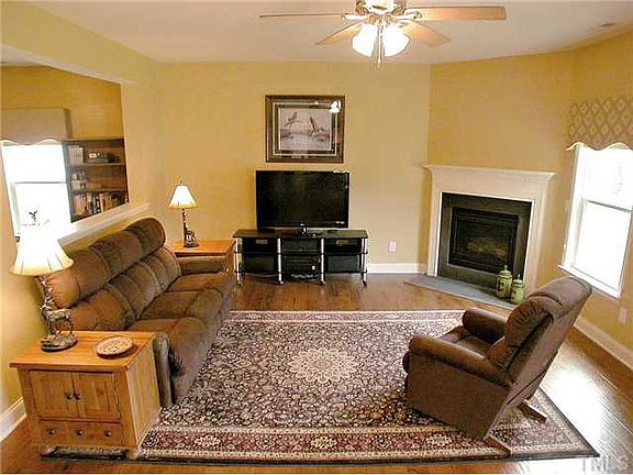 Beautiful ONE LEVEL living! So many special features in this lovely home. Upgraded kitchen cabinetry w/ crown and light rail moulding, granite counters, Ceramic tile in kitchen/baths/utility, Tile backsplash, 5" handscraped hardwood floors, Window trim, 4Ft. ext. on garage, Surround sound in family, speaker on covered porch, Inv fence. No yardwork - HOA maintains landscaping.