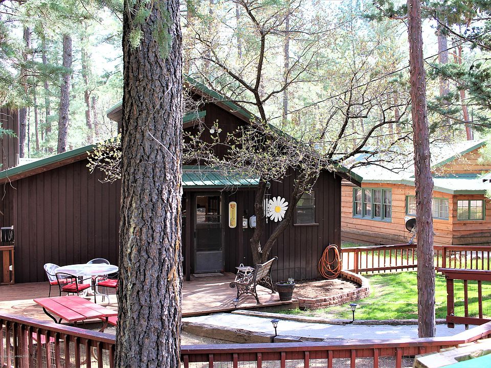 This is a lovely, well maintained and level Upper Canyon cabin. The lot is street to street, features a landscaped back yard, very easy access, and easy parking. The interior is open floor plan kitchen/dining/ living area with large wood burning fireplace. The living area features high vaulted ceilings, light and bright! The 2 bedrooms have custom built barn style closet doors, ceiling fans extra windows and light and bright! Bathrooms both have lots of natural light from either a window or a skylight. The homeowner has replaced the exterior front siding, and painted. Refinished kitchen and bathroom cabinets, replace most of interior lighting, and painted interior. The extra TLC really makes this home shine! Please show, you'll be happy you did!