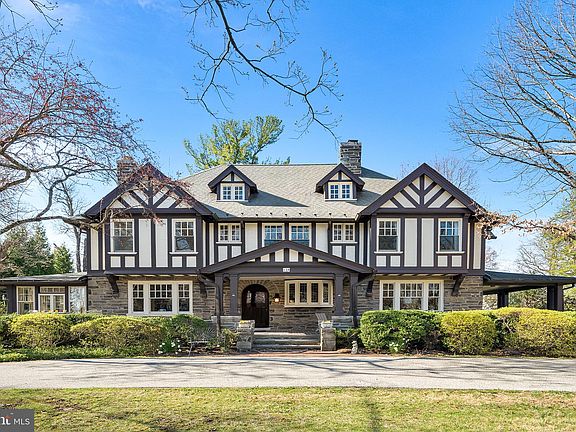 Welcome to a rare and remarkable offering—a stately Tudor masterpiece designed by the renowned Philadelphia architectural firm Duhring, Okie & Ziegler. Built in 1912, this distinguished residence embodies classic Main Line elegance while seamlessly integrating modern conveniences. Nestled on nearly an acre on the coveted north side of Haverford, this home boasts almost 6,000 sq. ft. of timeless sophistication. Approached via a sweeping circular driveway, the home’s stone exterior, accented with weathered finishes, exudes old-world charm. Enter through the grand foyer, complete with formal powder room, where wide-plank wood floors, deep window sills, and hand-hewn beams set a refined tone. A striking fireplace, one of four throughout the home, enhances the warm and inviting ambiance. To the right, the richly appointed library features built-in bookcases, a second fireplace with a brick surround and white wood mantel, and French doors leading to a covered side porch. The adjacent living room/family room offers additional gathering space, connecting effortlessly back to the foyer. To the left, the sun-drenched formal dining room leads to a cozy carpeted family room with exposed stone and access to another covered porch. The adjacent butler’s pantry serves as a passage to the gourmet kitchen, exquisitely remodeled by EB Mahoney. Designed for culinary excellence, it features Wood Mode custom cabinetry, granite countertops, recessed lighting, a Thermador five-burner gas cooktop on the island, a Dacor double oven, and a Bosch dishwasher. A mudroom and powder room provide convenient access to the driveway, rounding out the first floor. Ascend the grand staircase to the second level, where the primary suite offers a serene retreat with an ensuite bath. A second bedroom, currently utilized as a den/office, boasts custom built-ins. The third bedroom, newly carpeted, connects to a recently upgraded Jack & Jill bathroom leading to the fourth bedroom. The fifth bedroom features a beautifully remodeled ensuite bath with a frameless shower door and ample closet space. Nearby, a well-appointed laundry area with LG appliances and additional storage sits adjacent to a back staircase leading to the kitchen. Completing this level is the enchanting sleeping porch—a versatile space perfect for a yoga room, gym, home office, or recreation area. The panoramic windows frame picturesque views of the pool, patio, and lush backyard. The third level is a haven of possibilities, offering five additional rooms with hardwood flooring throughout. Ideal for guest accommodations, office space, a gym, or a homework area, this level also includes a full bathroom, built-in cedar drawers, closets, and extensive storage areas. The unfinished walk-out basement provides abundant storage and further opportunities for customization. The beautifully landscaped grounds are a true highlight, featuring mature plantings such as azaleas, oak leaf hydrangeas, and dogwoods. The inviting pool, framed by vibrant roses and lush greenery, offers a serene escape. Raised garden beds, a potting shed, and a private backyard add to the charm. A detached two-car garage includes an unfinished space above, presenting potential for a guest cottage or private studio. Situated in close proximity to Bryn Mawr and Haverford Train Stations, as well as several prestigious private schools and renowned universities, this exceptional home offers both tranquility and convenience. Experience the unparalleled character and grandeur of this magnificent Main Line residence—a home that promises timeless elegance and gracious living.
