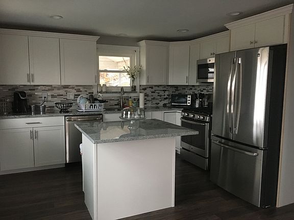 Lovely, meticulously maintained Cape style home that has recently been totally renovated. Fireplaced living room, open floor plan, stunning new kitchen with tiled backsplash, granite countertops, island and stainless steel appliances make a move-in ready home. Additional features include central heat and central air. Large exterior covered deck makes summer outdoor living desirable. Partially finished basement has a pellet stove and plenty of additional space for extended living. Home is centrally located, close to highway access and all public schools. This home is a must see!