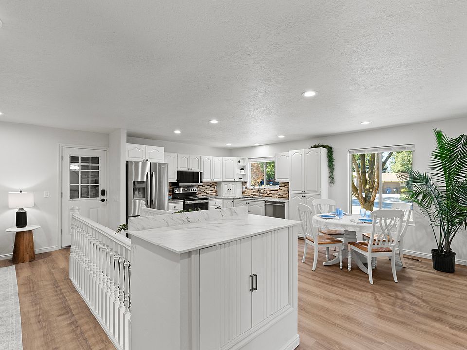 Discover this beautifully remodeled and tech-enabled 4-bedroom, 3-bathroom home, perfectly situated on a quiet cul-de-sac in Logan, UT. The main level features a bright, open-concept design where living and dining spaces flow together over a mix of hardwood, carpet, and new LVP flooring. The updated kitchen is the heart of the home, fully equipped with modern appliances and designed for both daily living and entertaining. Retreat to the spacious primary bedroom, which includes a private adjoining bathroom with a separate jetted soaking tub and shower, plus a walk-in closet with modular storage for optimal organization. A versatile den provides the perfect space for a home office or media room. A standout feature is the full, walkout lower level with its own private entrance. Currently a salon, this space can be easily converted into a private Accessory Dwelling Unit (ADU), offering the potential to generate an estimated $1,200 per month to significantly offset your mortgage payment. The home is complete with a fenced yard, central air, and gas heating for year-round comfort.