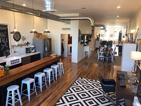 Start Showing Date 1/18/2024. This updated Building on the Square in Boonville is a sight to see, with two retail spaces on the ground level that are currently rented. However, the true gem of this building is the massive and gorgeous Loft Apartment upstairs, which was meticulously renovated in 2018/2019. As you come up the stairs, you are immediately greeted with an open concept living area, dining area, and a large kitchen featuring a unique island crafted from an old bar. The kitchen also boasts a good-sized pantry that connects to the laundry room and a full-size bathroom, complete with large vintage sliding doors. Continuing through the hallway, you will come across another full-size bathroom featuring an original clawfoot tub. This side of the apartment also houses four very spacious bedrooms. This incredible living space is truly a rare find and one that should not be missed!