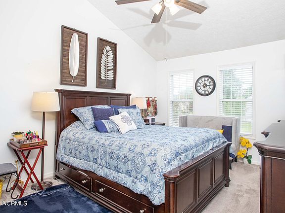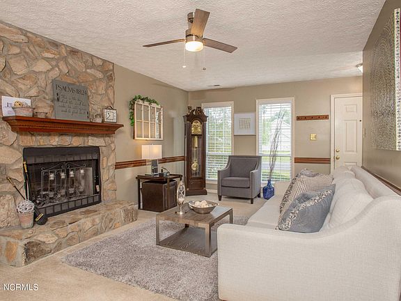 Welcome to this spacious two-story home nestled in the heart of Havelock, where comfort and style meet. The formal living room invites you to entertain with its stone wood burning fireplace, abundant natural light, and luxurious carpeting. The well-appointed kitchen provides ample storage, a cozy breakfast nook, and a seamless flow into the adjoining entertaining areas. Retreat to the owner's suite, boasting vaulted ceilings and a generously sized walk-in closet for your convenience. Move outside, to an amazing outdoor space, complete with a large deck perfect for hosting cookouts with neighbors, while the wooden privacy fence ensures a secure haven for your loved ones. To top it off, this home has a new roof, HVAC, water heater, shed, garage door, and all new ceiling fans installed within the last year. With its close proximity to MCAS-Cherry Point, award-winning beaches within a short 30-minute drive, and the vibrant shopping and restaurant scene of Downtown New Bern, this home offers a truly desirable lifestyle.