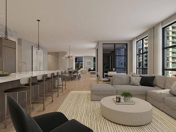 IMAGINE 75 FEET OF FRONTAGE ALONG GREEN STREET AND DIRECT ACCESS TO MARY BARTELME PARK! Residence 2A features a private elevator entry into an incredible open living space with floor-to-ceiling windows with an urban view and view of the Loop. Spanning 4700 SF of interior living space on one floor with 75-feet of Living / Dining / Kitchen / Family / Terrace frontage on Green Street. And a 890 SF terrace running along the entire north side of the home. A large 10-person dining room is bookended by a massive kitchen island overlooking a family room on one side and a 20-ft+ wide living room opening onto a private outdoor terrace with room for a firepit, dining table & grill. Each of the 5 bedroom suites easily accommodates a king/queen bed and opens to an attached bathroom. Actual laundry room, multiple outdoor entertaining spaces, family room, and THREE-CAR PARKING INCLUDED, makes this a one-of-a-kind home in the West Loop. The spacious master suite features separate tub & shower, 2 vanities, linen cabinet, private toilet & dual walk-in closets. The generous library gives you the flex space you need - to work from home, to set up as a playroom or to place your Peloton / Mirror Gym. Peoria Green is another fantastic ZSD development, who is just completing Hampden 73 and Hampden 53 in East Lincoln Park. The West Loop's best-selling new construction development has only two homes available. Now under construction and delivering Spring 2021. Virtual appointments are available with f
