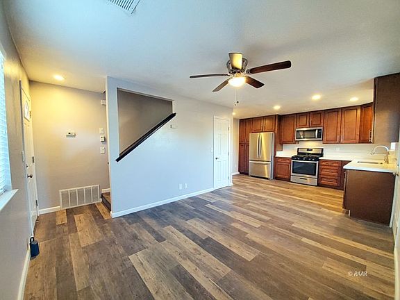 Cozy condo, right at the Richmond Gate of the Naval Air Weapons Station, China Lake. The home features 3 bedrooms and 1.5 bathrooms. It had a full makeover in 2018. Easy to maintain plank flooring, new cabinets, and hard surface countertops installed throughout. Stainless still appliances. Light fixtures were also updated; recess lighting and ceiling fans. There is a half bathroom on the first floor and a full bathroom on the second floor with a tub. Lots of storage and walk-in closets. Spacious 2 car attached garage with laundry hookups. Fenced backyard. Move-in ready.