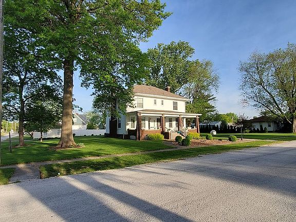 Small town living at its best. This gorgeous, well-maintained home features 4 bedrooms and 1.5 bathrooms. The house is full of character and many original details. There are ten foot ceilings on the first floor and nine foot on the second. The kitchen has newer stainless appliances. The spacious living room includes a fireplace and elegant wide crown moulding. The open staircase leads to a landing with an original stained glass window. Four large bedrooms and a Jack and Jill bathroom complete the upstairs. The house has a new roof, paint and tankless hot water heater. The home has been freshly painted, inside & out. There is a full basement with lots of storage space. It is situated on two lots, for a total of .5 acres. There is a detached 2 car garage as well as a single car garage. The property has an above-ground pool, patio and recent landscaping.