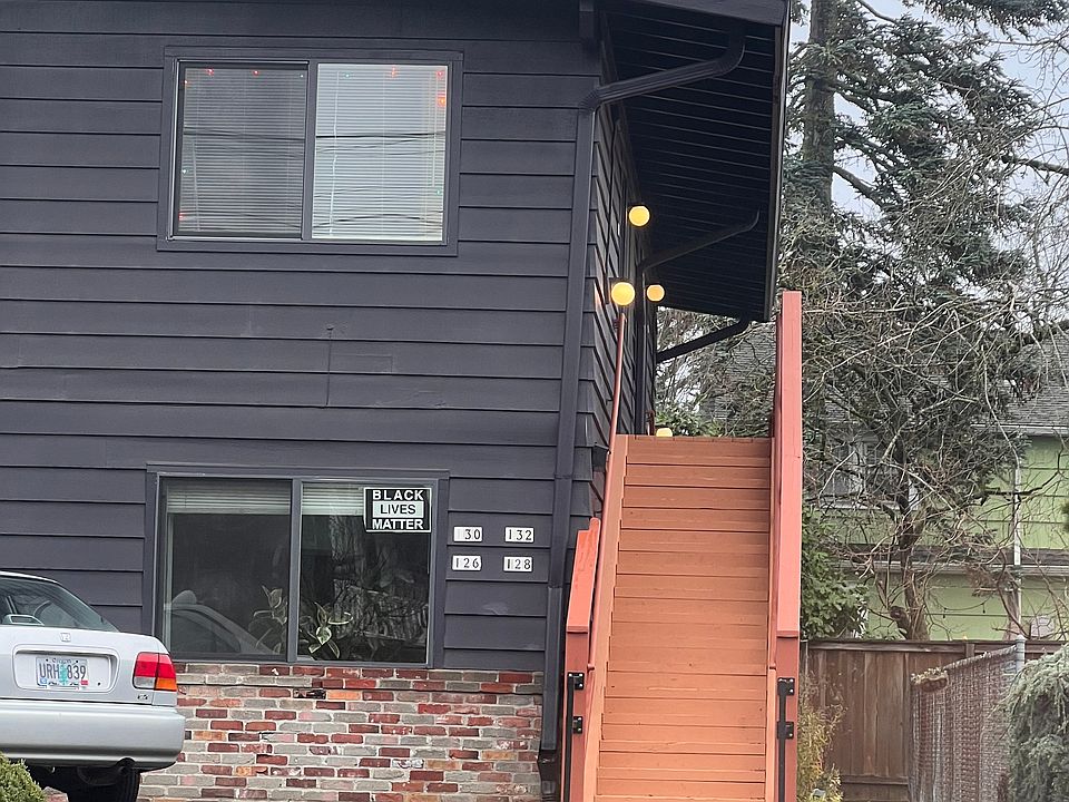 Very spacious 800sq.ft. Apartment on upper floor. Laminate floors, lots of light and large main bedroom. Very usable layout with laundry in unit. Very near to popular Hong Phat grocery store and cafes and stores on Stark st. In Montavilla. Both bedrooms accommodate queen size beds and nightstands as well as a dresser. Nice size closets including linen closet and coat closet. Ample cabinets in kitchen. Public transportation within a block. Off street parking. Dog friendly.