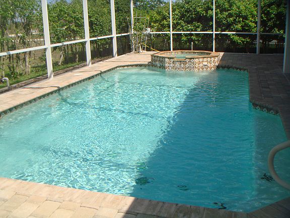 Enjoy living the Florida life in this beautiful 1,650 square foot under air spacious custom home. Some of the features include tile throughout, two sets of french doors leading out to the west facing private pool with spillover spa, full length lanai with pavers, designer lighting, wet bar, surround sound speakers, child safety fence, irrigation, and decorative rock fountain, laundry room, epoxied garage floor with benches cabinets and built in speakers. The huge Master bedroom has a walk in closet and en suite bathroom with dual sinks, water closet, jetted tub and separate shower. The second bedroom is also spacious and a third bedroom which could be used as an office. The bright and open concept living has vaulted ceilings,large pantry and a breakfast bar. Excellent schools and a public library are very close for families. This neighborhood is also close to the pine island corridor of shopping, restaurants and only 5 minute drive to the Matlacha boat ramp to launch your boat in the Gulf to fish or watch the dolphins. New $2,000 landscape improvements replacing the Ficus trees with Areca Palms and Foxtail Palms. Will provide a tropical paradise for the many sunsets to come.