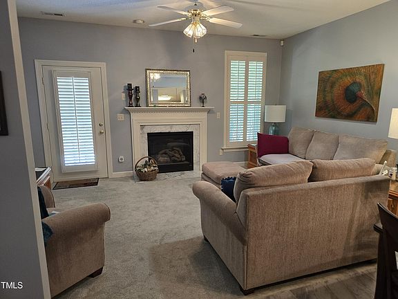Located in an exceptional 55+ community in Cary, this beautiful ranch-style townhome offers ideal low-maintenance living in a prime location. With 2 spacious bedrooms, 2 full baths, this home is perfect for comfortable, single-level living. The living room has a gas fireplace and is connected to breakfast area and kitchen creating an airy space for entertaining. There is a formal dining room that can be used as a den. At the back is a large patio, perfect for relaxation. Primary bedroom is spacious and has a huge walk-in closet. A two-car garage provides ample parking and storage. The community offers a peaceful atmosphere with beautifully landscaped acres that include tree-lined streets with walkways and community ponds, clubhouse access, and various social activities, all within close proximity to shopping, dining, and medical facilities. Enjoy a lifestyle of convenience, comfort, and community in this wonderful townhome!